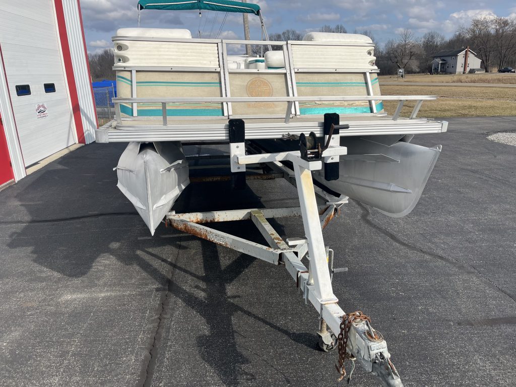 1997 Crest 25' pontoon boat with a Mercruiser 3.0l engine and tandem axle trailer.